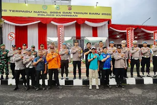 Kuningan - Kapolres Kuningan, AKBP Willy Andrian, S.H., S.I.K., M.H., melaksanakan kegiatan monitoring dan pengecekan Pos Pengamanan Terpadu Operasi Lilin Lodaya 2024, Selasa (24/12/2024) di Pos Pengamanan Taman Kota, Kuningan. Kegiatan ini dilakukan bersama Tim Propam Mabes Polri untuk memastikan kesiapan pengamanan menjelang perayaan Natal dan Tahun Baru.